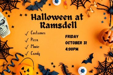 Join us at Ramsdell for a graveyard smash! We’ll have snacks, drinks, and a movie before we close our doors for Trick or Treating at 5:30. Costumes are encouraged, all ages are welcome.
