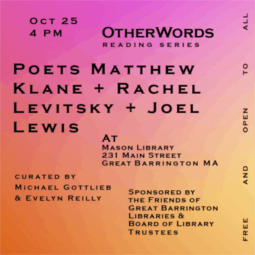 This program is sponsored by the Friends of Great Barrington Libraries and Board of Trustees. Curated by Michael Gottlieb and Evelyn Reilly.