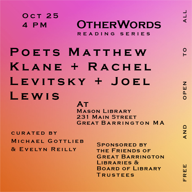October 25: Rachel Levitsky, Joel Lewis, Matthew Klane