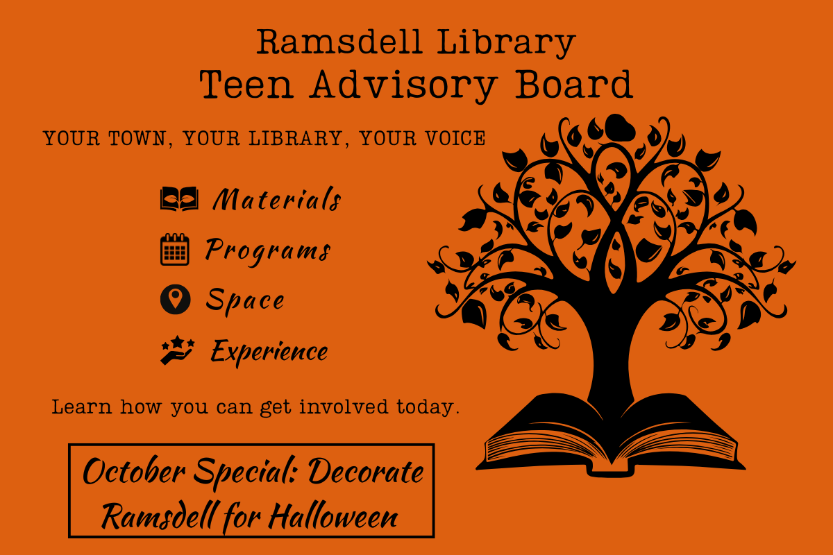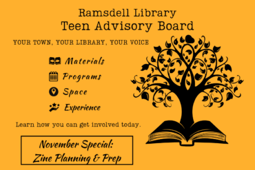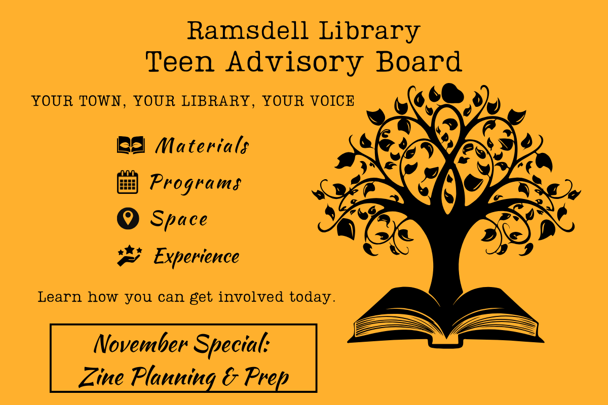 The Ramsdell Teen Advisory Board is looking for teens in middle and high school to volunteer their voices and their time. Teens who join will be working collaboratively and contributing in ways that support their interests and work with their schedules.