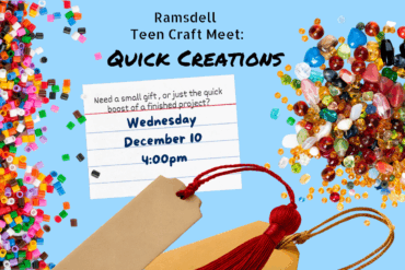 Maybe you need a small gift, or you just want the boost of completing a project. This month we’ll be creating small, quick crafts like bookmarks, beaded jewelry, and fuse beads. Join us to craft and chat or to learn a new skill!